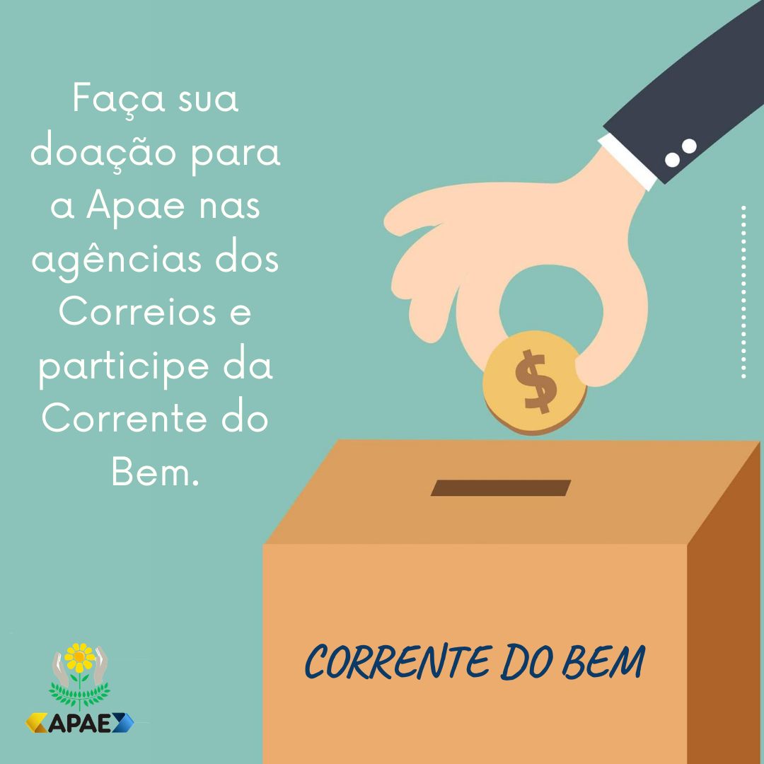 A Corrente do Bem é a nova campanha para arrecadação de recursos financeiros em favor das 432 Apaes mineiras. O objetivo da campanha é angariar recursos financeiros para as Apaes por meio de doações realizadas nas agências dos correios.